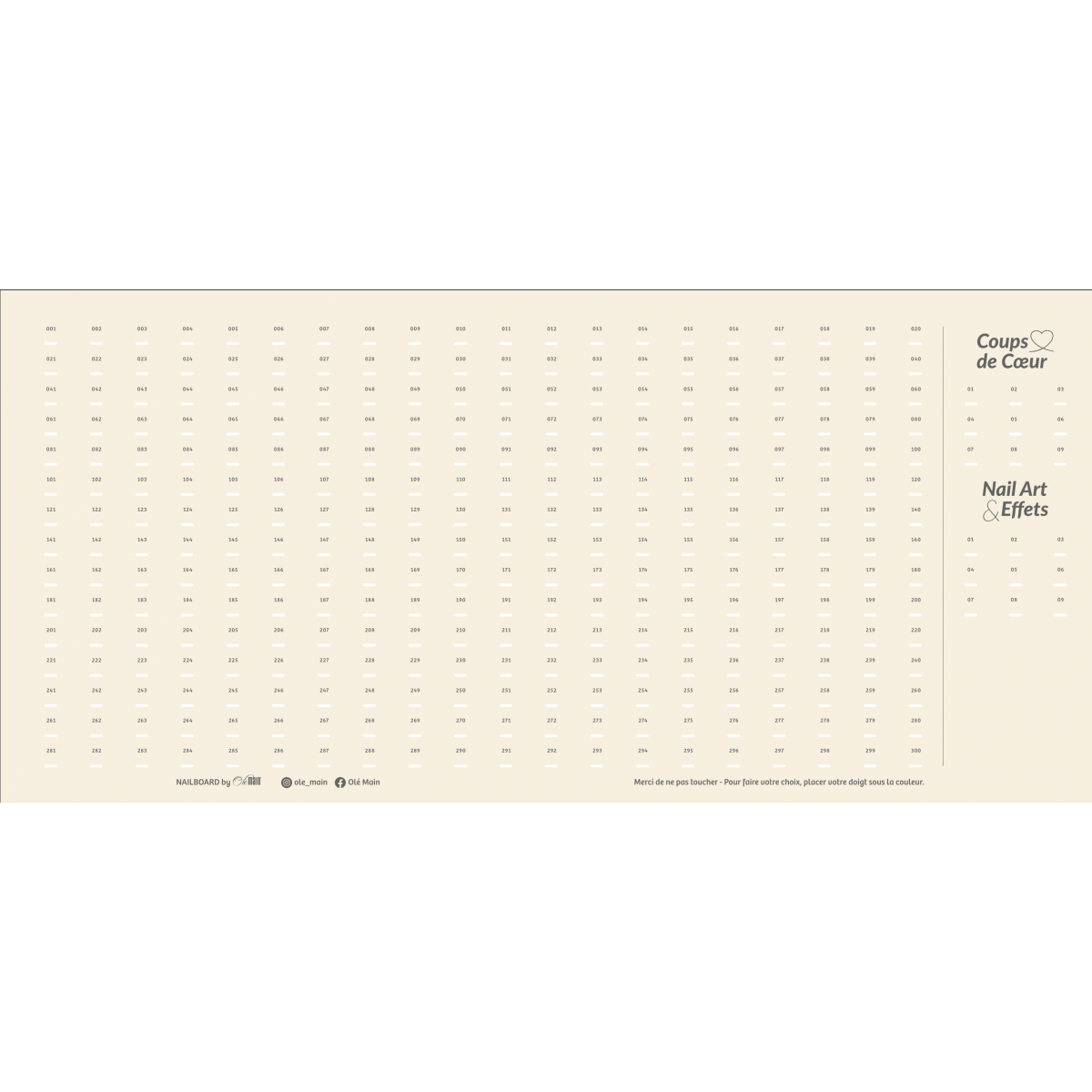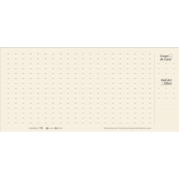 The L Nailboard measures 102x56 cm - It has 418 color spaces - 10 favorites - 10 nail art & effects