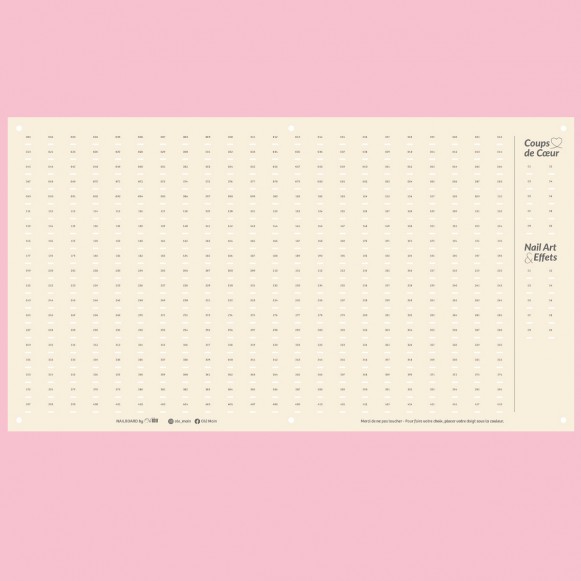 La Nailboard L mesure 102x56 cm - Elle dispose de 418 emplacements couleurs - 10 coups de coeur - 10 nail art & effets